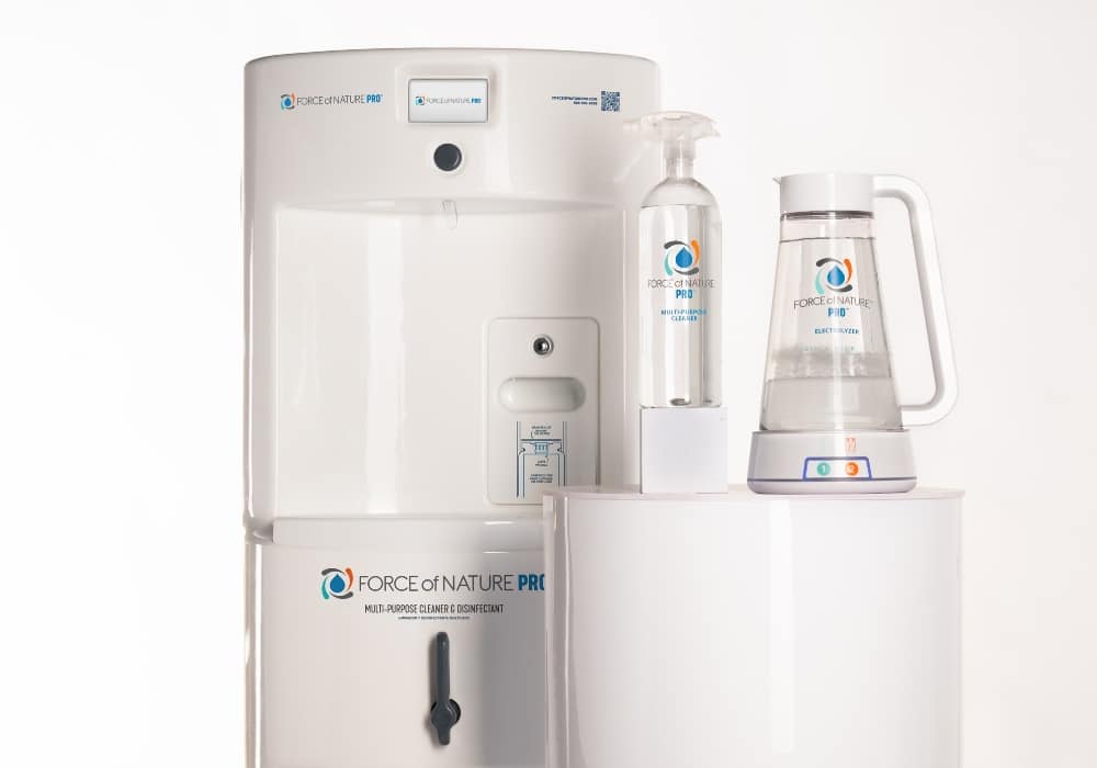 Force of Nature is a powerful cleaning, deodorizing, sanitizing, and disinfecting solution that can replace virtually every cleaning product you use with an effective, toxin-free solution. We’re proud to offer an on-demand disinfecting solution that business owners can make whenever they need it. Most business owners don’t know that products, like bleach, degrade over time and can lose their efficacy in as little as six months. To make it even easier, and save you money in the process, we offer subscribe-and-save on our capsules, which means you can save up to 80% per oz vs typocal cleaning products. We have 2 size options to meet the needs of smaller and larger spaces: our 12 ounce Force of Nature, and our large-capacity, commercial-grade Force of Nature Pro that makes 32 or 64 oz. Learn more about Force of Nature, our EPA-registered disinfectant, and many more ways you can use it in your business. Or, if you’re purchasing for a large business or organization, we can customize pricing, assortment and training for you! Click here to get started.